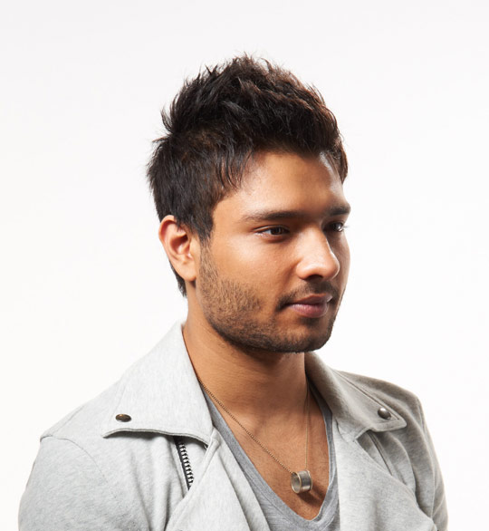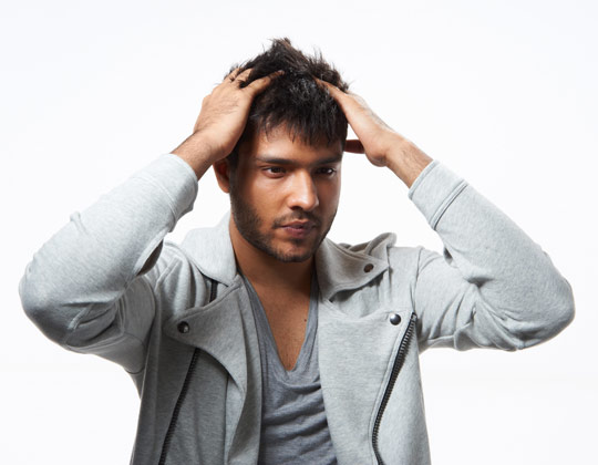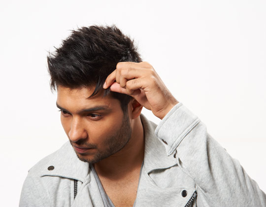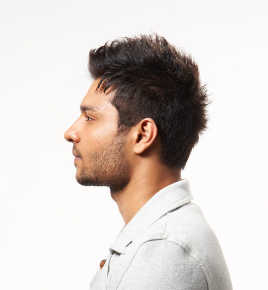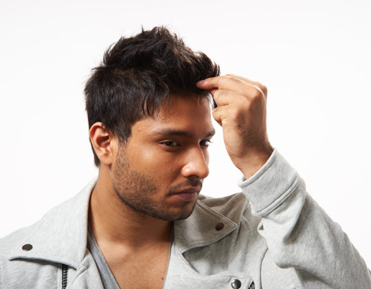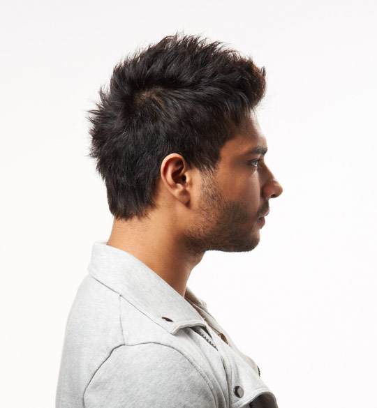 Vuốt phần tóc mái lên. Dùng lượng sáp còn dư để giúp vuốt phần tóc mái lên, để lộ vần trán và bắt đầu tạo kiểu chúng.