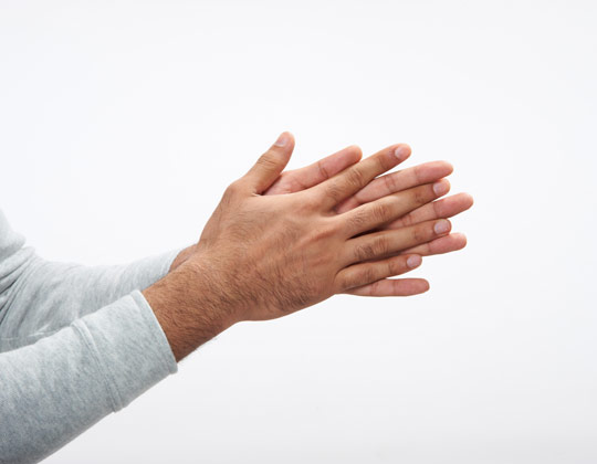 Xoa 2 bàn tay với nhau cho tới khi sáp trở nên trong suốt. Hãy để sáp len lỏi cả vào những ngón tay bạn nữa nhé.