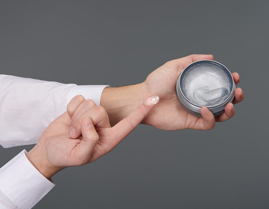 Thoa đều lên tay. Chú ý thoa để pomade len lỏi đều vào các ngón tay.